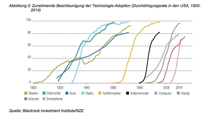 Marktdurchdringung von Technologien, aus «Herausforderungen der Digitalisierung für Bildung und Forschung in der Schweiz» (SBFI, 2017)